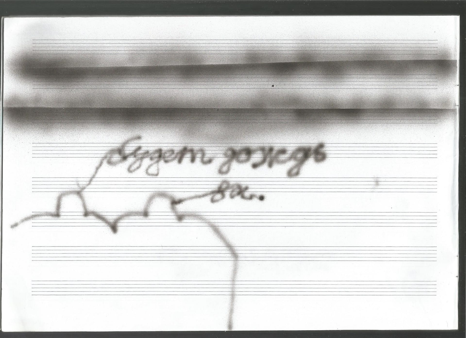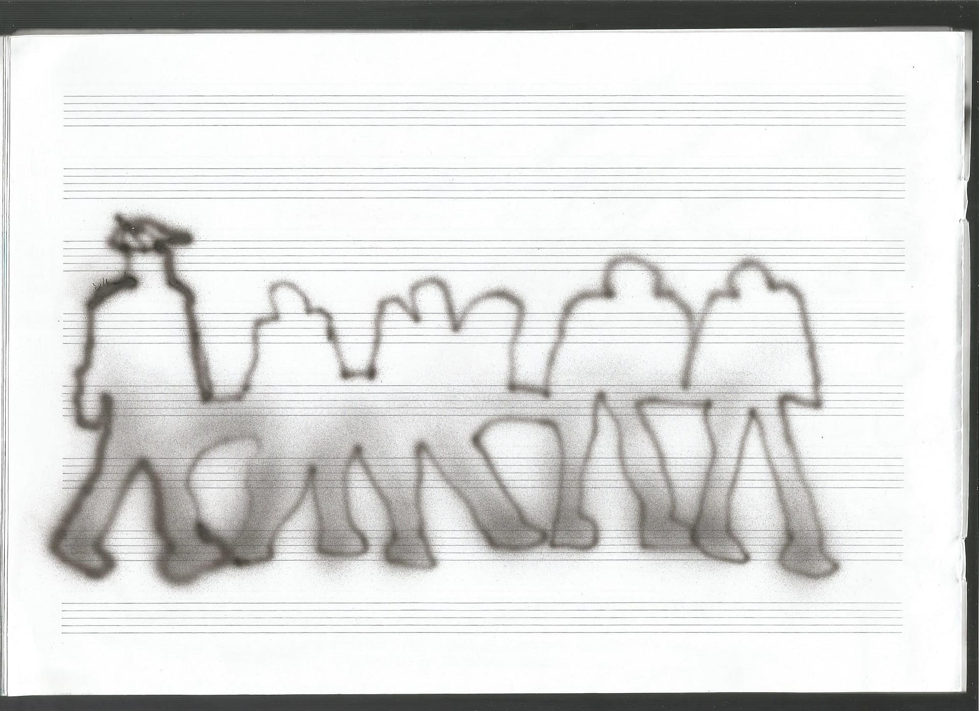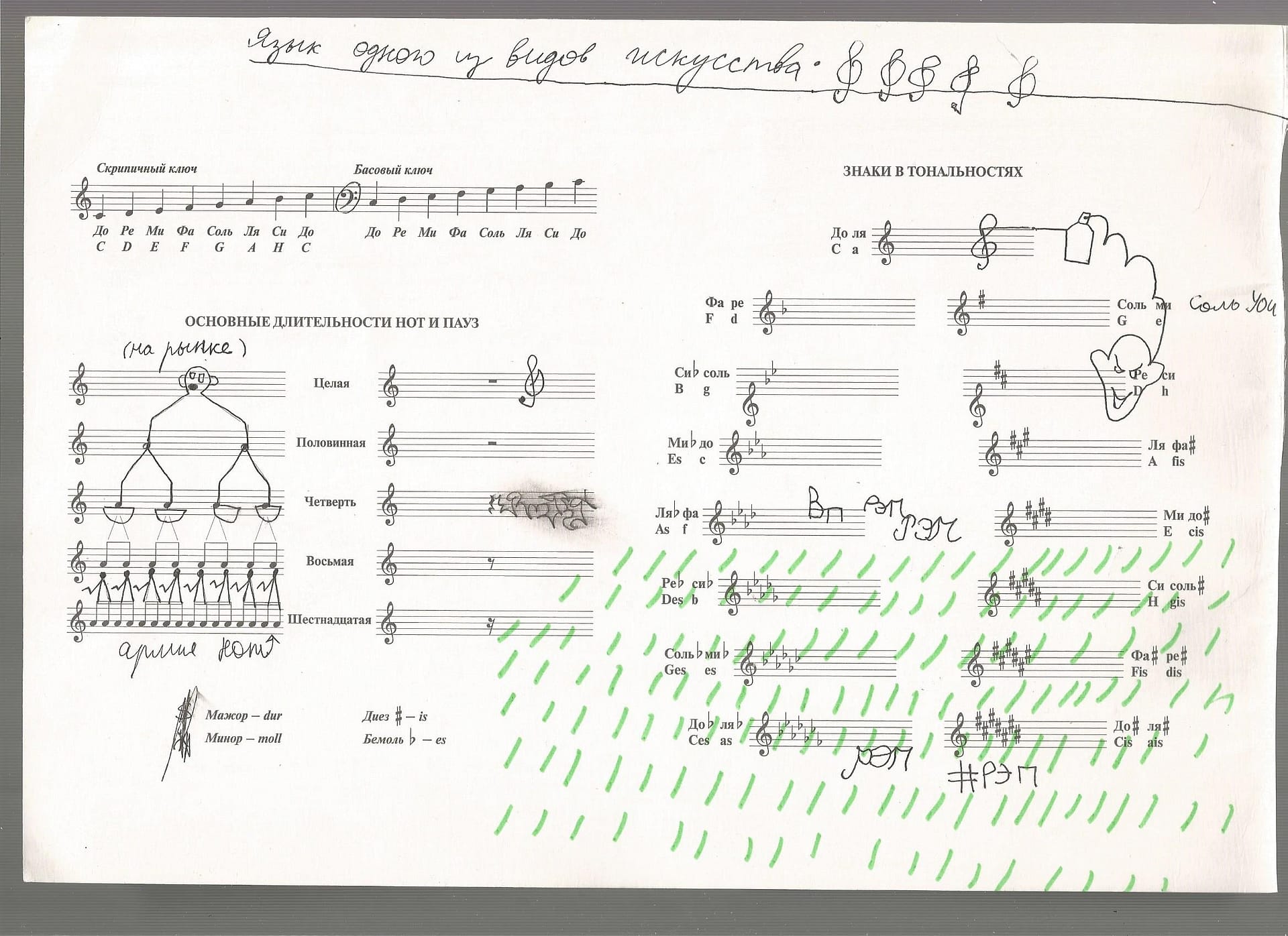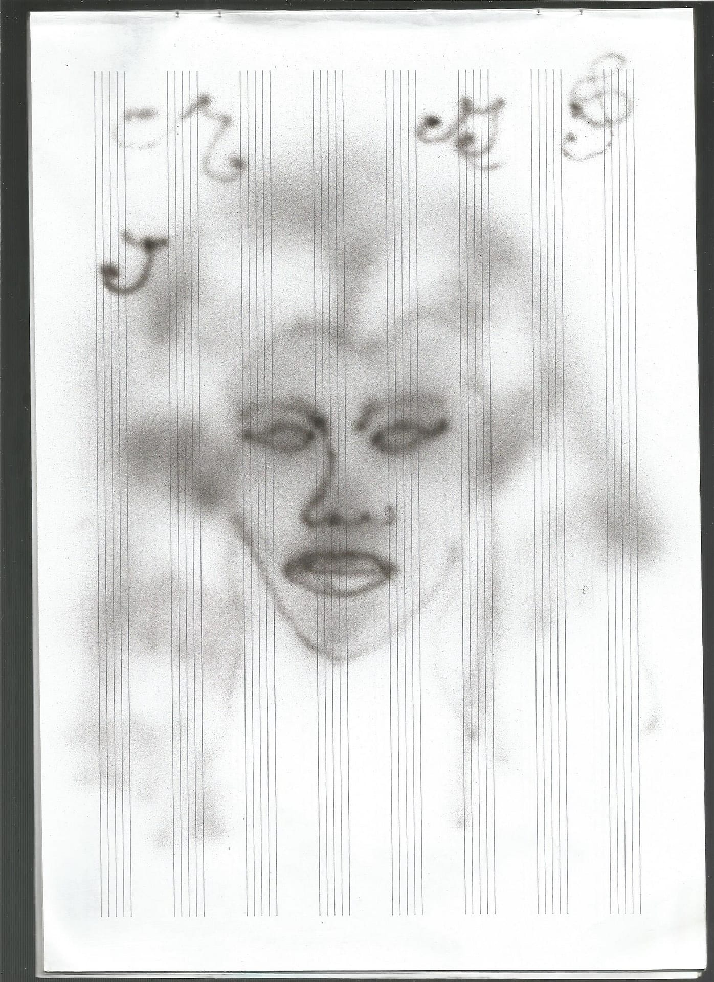 Серия работ 17 летнего художника Zean Zack’а запечатлевает экспрессивные меланхолические образы, будто взятые из пугающе красивого сна, настигающего человека на пике эмоционального перелома. Смесь теплых воспоминаний и странных персонажей неравномерно заполняет пространство нотной бумаги, сохранившейся со школьных уроков музыки, и оставляет после себя нервные каракули на листе, призванном упорядочить и выстроить музыкальную композицию. Среди всех работ можно выделить три отдельные, где подростковый бунт, принуждающий сопротивляться «властному» документу-листу смиряется. Карикатурные изображения на себя и на окружающих людей, заполняющие лист выстроенной нотной сетки, сменяются ритмичными композициями, где каракули уже сами создают мелодию и перерастают в очень наивный и игрушечный Gesamtkunstwerk*, который, всё же, так и не вырастает во что-то большее, чем обычные «музыкально» — испорченные школьные заметки. *