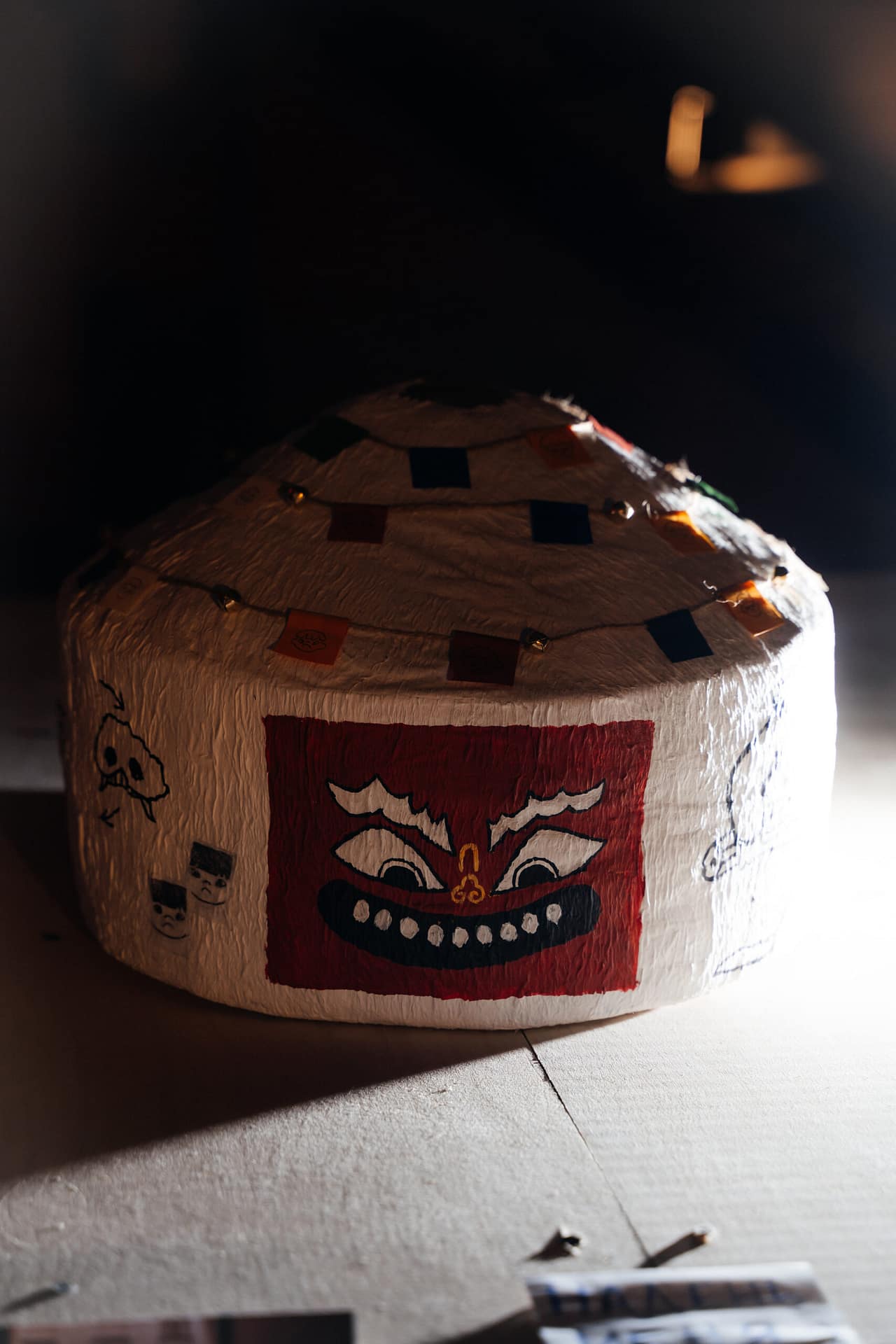 Юрта была вдохновлена работами творческого объединения «Бурятский Андеграунд. Участники объединения прячут свои лица за масками.